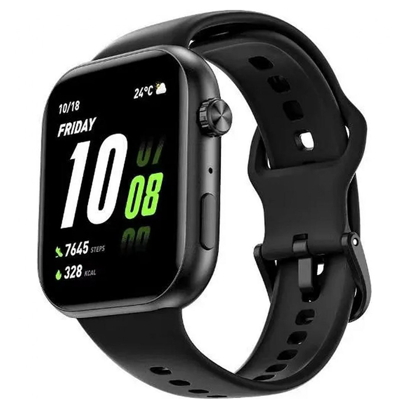 синхронизация с Android/iOS, экран AMOLED 1.85", поддержка SIM-карты: нет, пульсометр, измерение кислорода в крови, AOD, корпус: пластик, ремешок: силикон